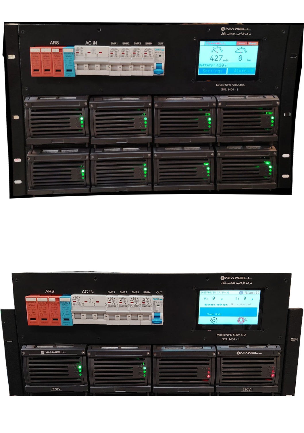 این دستگاه یک منبع تغذیه یکسوکننده صنعتی پیشرفته از سری NPS-F است که توان و ولتاژ خروجی ثابت و پایدار را ارائه داده و قابلیت کارکرد در شبکههای AC تکفاز و سهفاز را داراست. سیستم از رگولاسیون دقیق خط و بار با ریپل بسیار پایین و راندمان بالا بهره میبرد و به مجموعهای کامل از حفاظتهای الکتریکی شامل فیوز، MCB، ارستر و محدودکننده جریان هوشمند مجهز شده است که ایمنی و پایداری عملکرد دستگاه را بهطور چشمگیری افزایش میدهد. کنترلر هوشمند دستگاه امکان تنظیم لحظهای ولتاژ و جریان DC، انتخاب حالتهای شارژ سریع و نگهداری و همچنین جبرانسازی دمای باتری را فراهم میسازد و این تنظیمات از طریق یک نمایشگر لمسی ۴.۵ اینچی بهسادگی در دسترس بوده و مقادیر ورودی و خروجی را بهصورت لحظهای نمایش میدهد. طراحی صنعتی دستگاه با قابلیت نصب در رک ۱۹ اینچ و بهرهگیری از سیستم تهویه فعال، آن را به گزینهای مناسب برای کاربردهای صنعتی سنگین در صنایع نفت، گاز، پتروشیمی، نیروگاهها و مراکز داده تبدیل کرده است.